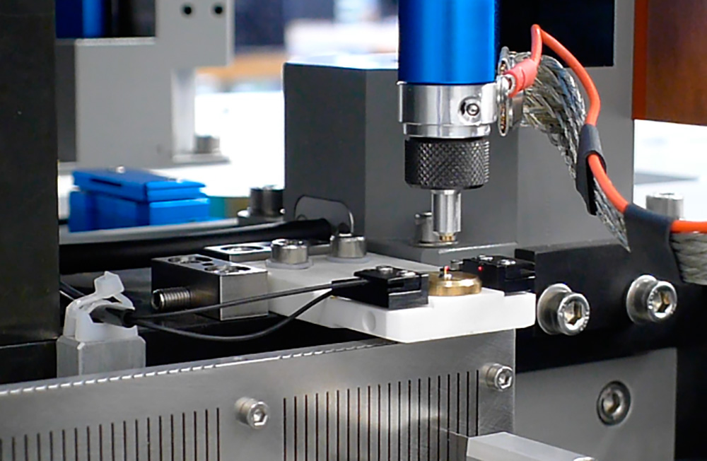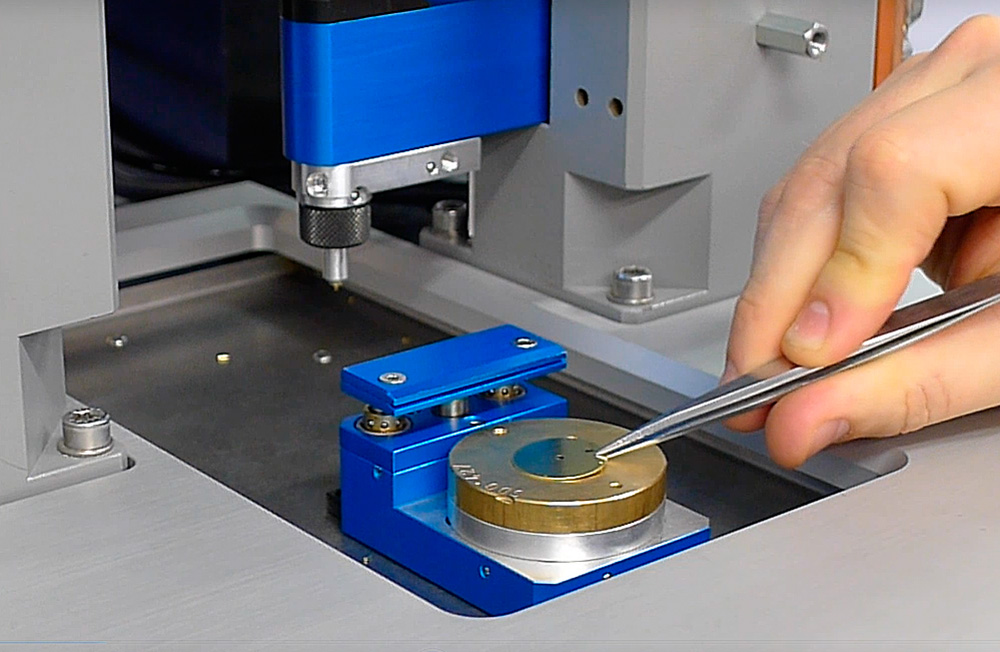 A configurable servo press enables the user to optimally control the pressure of feet on the dial.