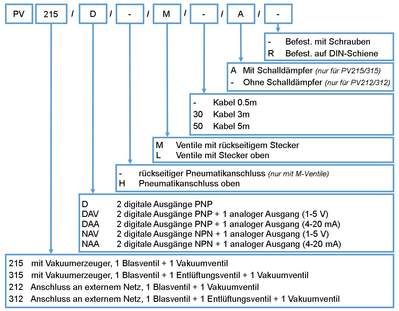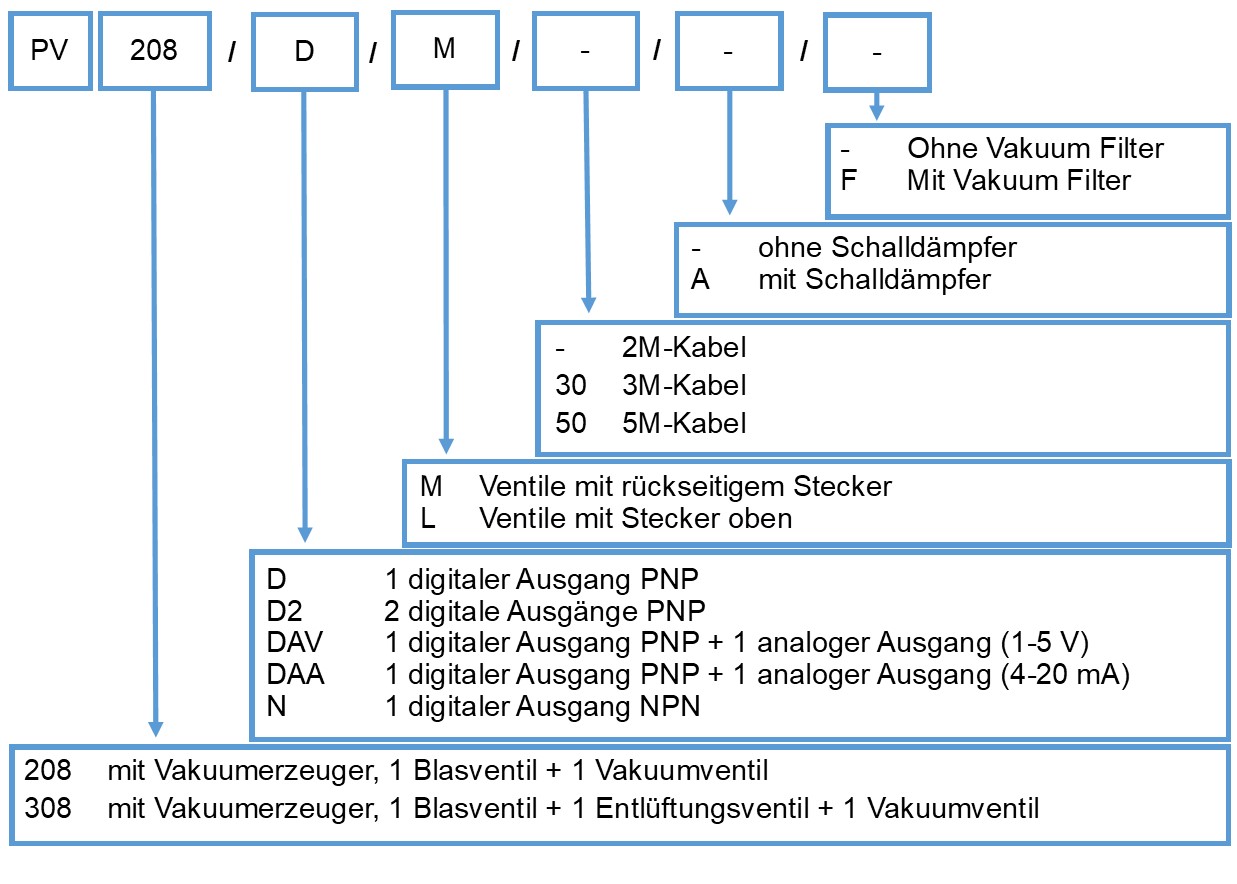 Diese Einheiten sind auch ohne Vakuumerzeuger verfügbar. PV212 und PV312 sind an dem direkter Anschluss an externem Vakuumnetz anschließbar.