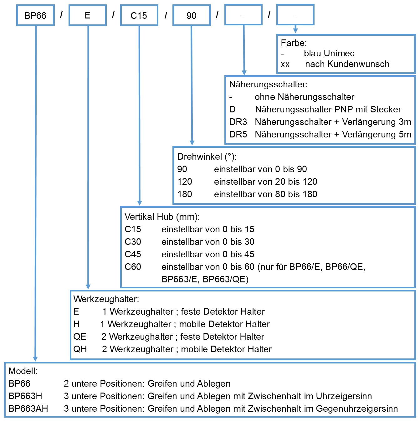 Die Positionen Greifen und Ablegen sowie die Bewegungs- geschwindigkeiten können unabhängig voneinander gesteuert werden. Diese drehbaren Manipulatoren sind mit hydraulischen Stossdämpfern am Ende der Drehbewegung ausgerüstet. Sie sind auch mit Hartmetall-Anschlägen am Ende der Drehbewegung ausgestattet.