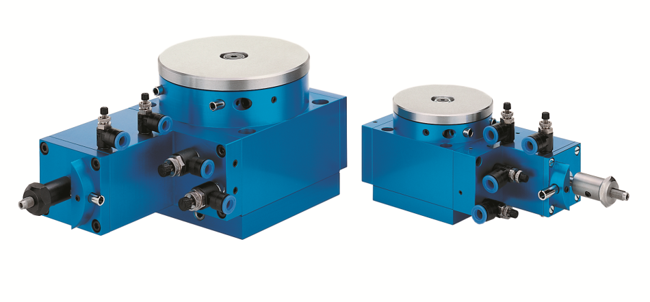 Die Rotationstische drehen horizontal. Ihr Einsatz ist für halbautomatische oder automatische Ladestationen bestimmt. Die eingebauten Präzisionsanschläge aus Stahl garantieren höchste Genauigkeit.
