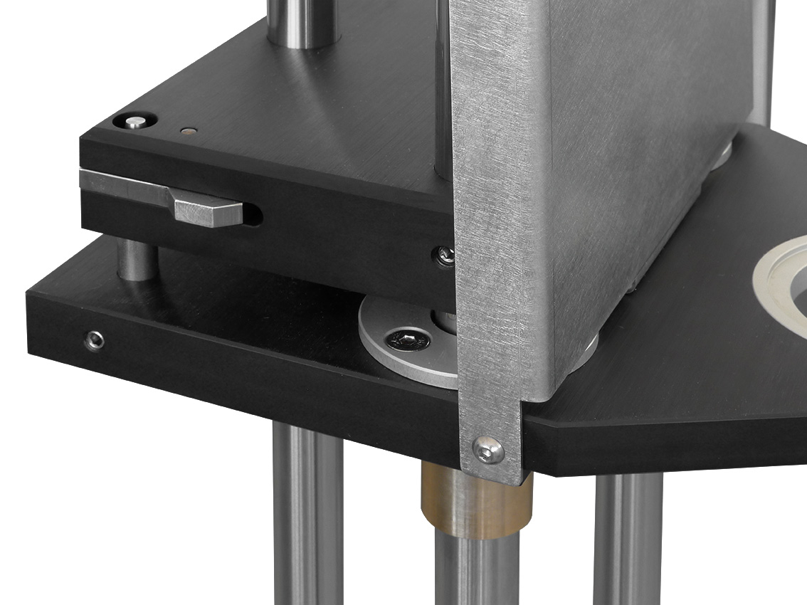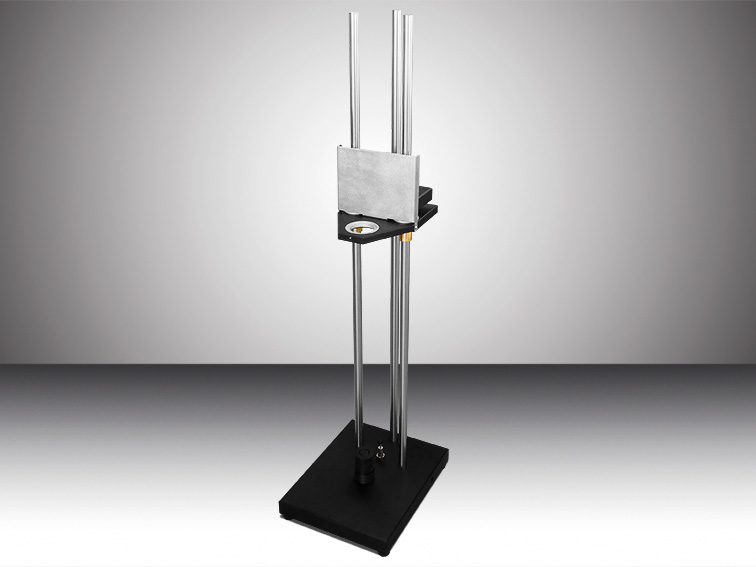 Le cadran est disposé sur une navette guidée par des paliers lisses. Le test est effectué par chute gravitationnelle du cadran accompagné de la navette. L'impact est réalisé sur une enclume en Delrin.